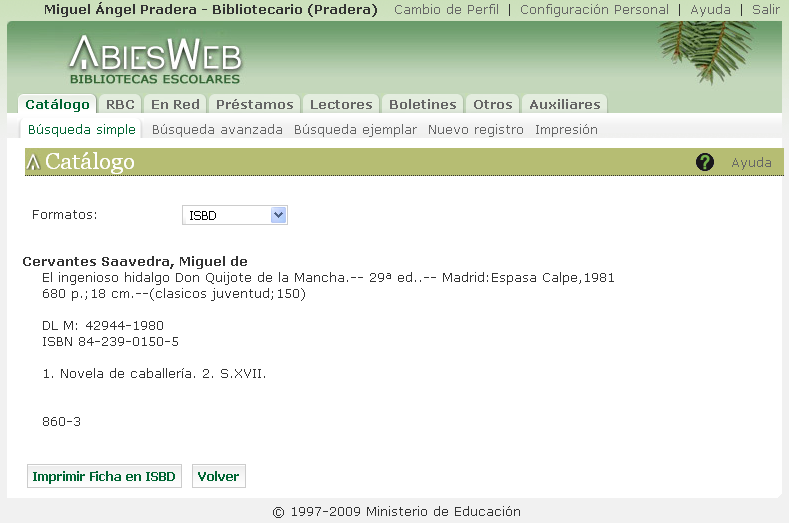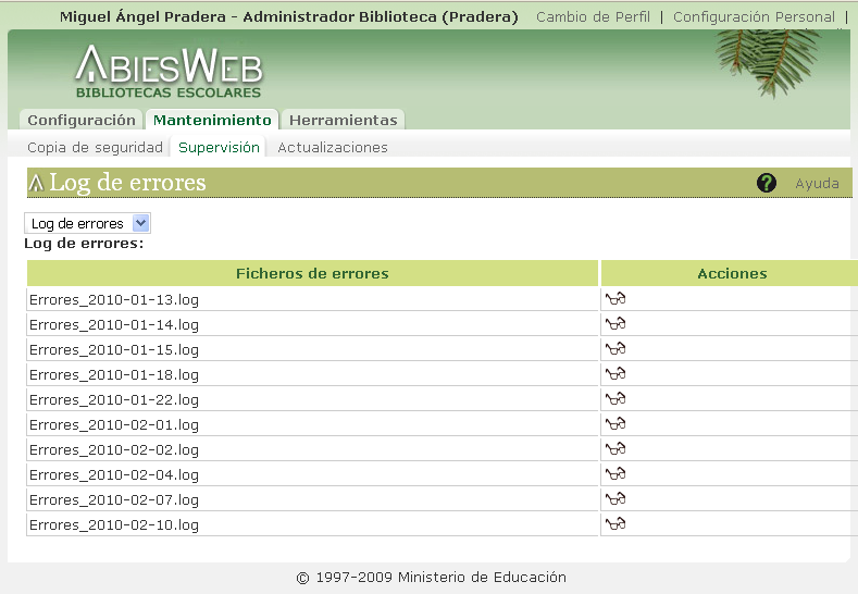 Esta página muestra todos los archivos subidos. Por defecto, el último subido se muestra al principio de la lista. Un click sobre el encabezamiento de la columna cambia el orden.